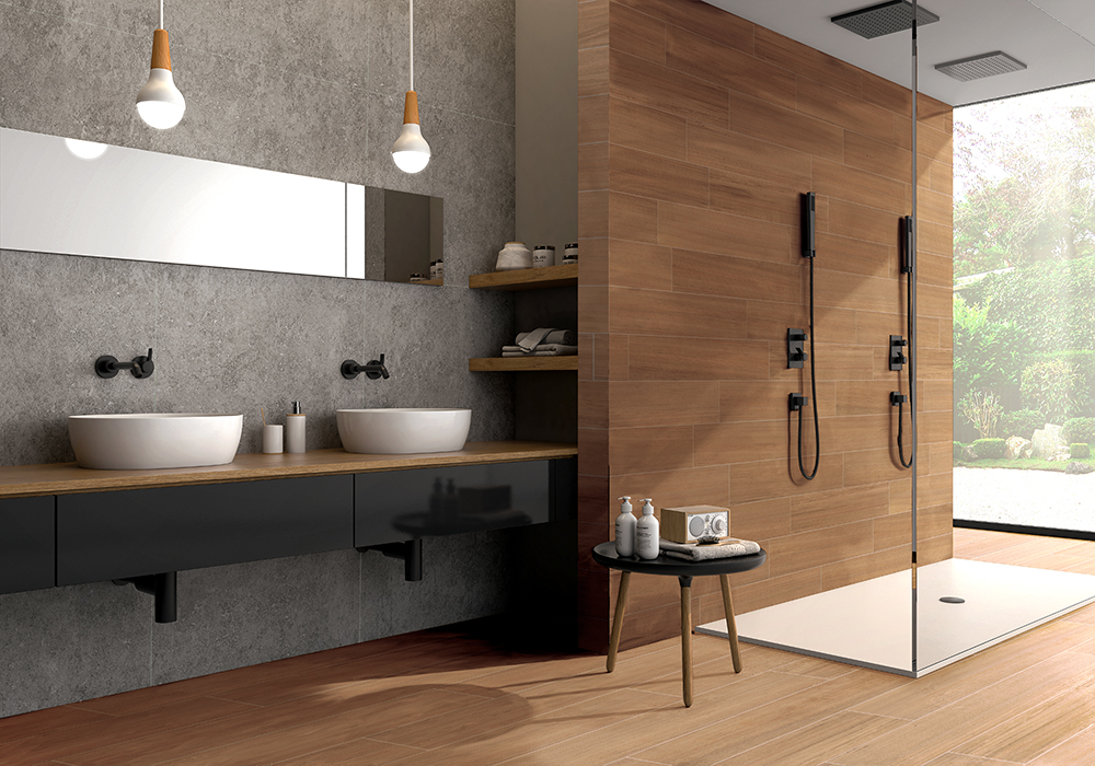 Alabama Walnut 59,5×119,2 | Pietra coral Natural 1000×3000 · Pietra Coral Matt 59,5×119,2