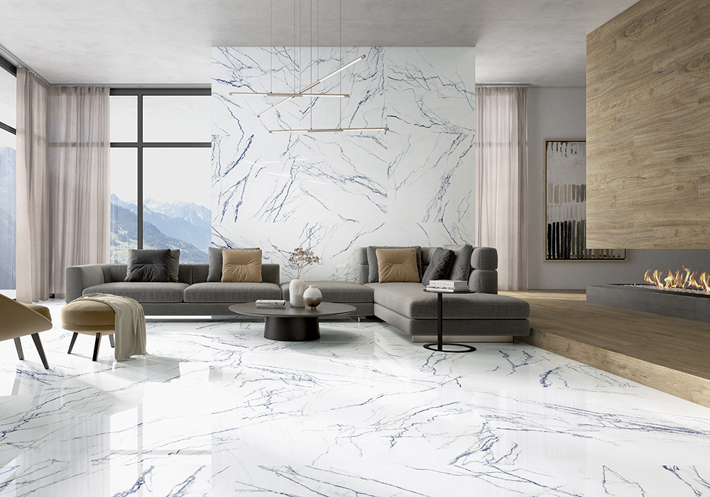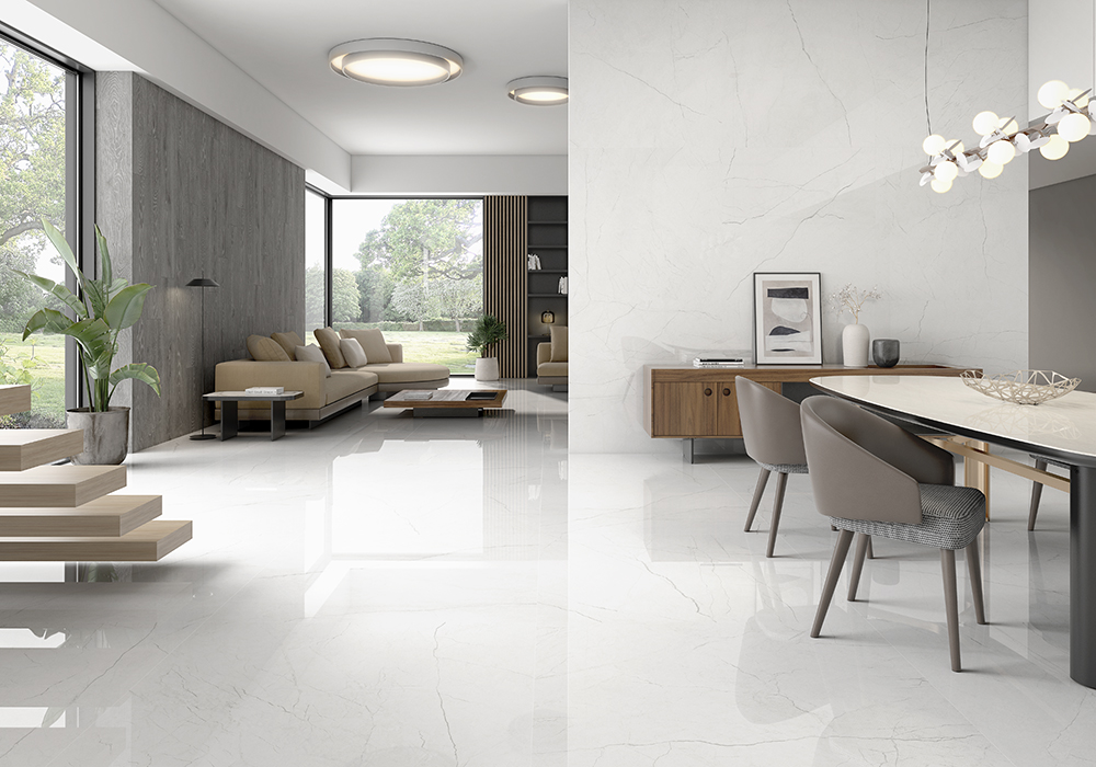 Amalfi Grey Matt 25×150 Rect. / Omnia White Polished 120×120 Rect. | Omnia White Polished 120×120 Rect.