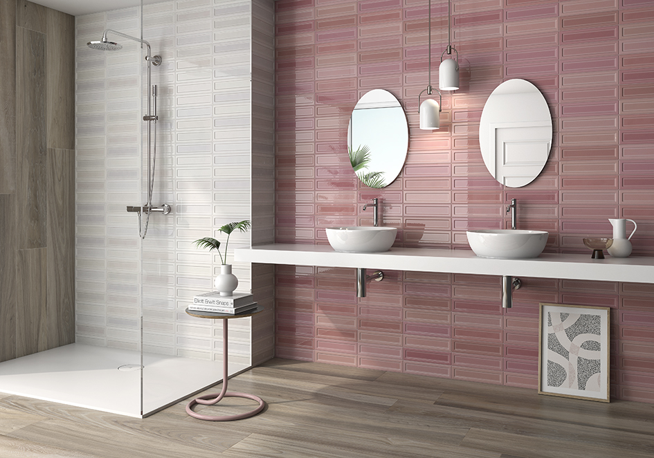 Osaka Rose Shiny 7,5×30 · Osaka White Shiny 7,5×30 | Lakewood Natural Matt 25×150 Rect.
