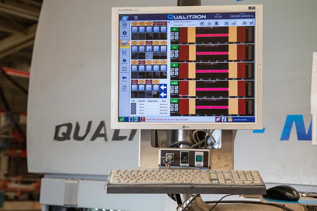 Para la Industria 4.0, hemos desarrollado un software de gestión MOM (Manufacturing Operations Management) junto con habilitadores digitales como el Big Data, IoT (Internet of Things) o Machine Learning, que integra todos los sistemas de la fábrica, consolidando así en un único punto todos los datos relevantes. En la imagen, análisis de datos en la zona de prensado.