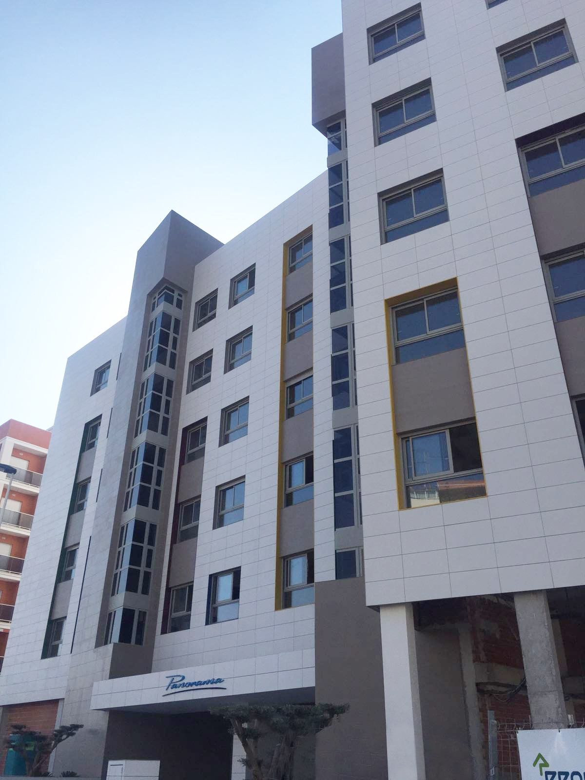 *Soluciones Arquitectónicas* por ITT Ceramic. Fachada Ventilada con nuestro producto City White y Antracita 60,5×120,5 y 45×90.